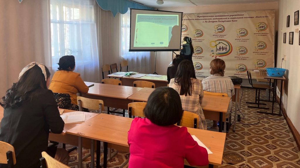 Перед учителями-логопедами и специалистами Центра, выступила учитель-логопед Центра «Надежда» Шончалай Саакпан раскрыла теоретические основы и пути профилактики коррекции и дисграфией и дислексией, провела практикум приемов работы с детьми на уроках и во внеурочной деятельности.